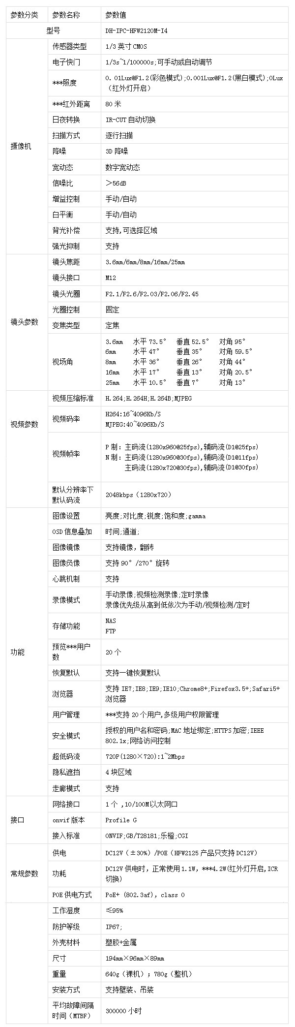 大华新品130万120米四灯红外防水网络摄像机 DH-IPC-HFW2120M-I4