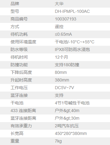 大华 DH-IPMPL-100AC 智能双模车位锁遥控