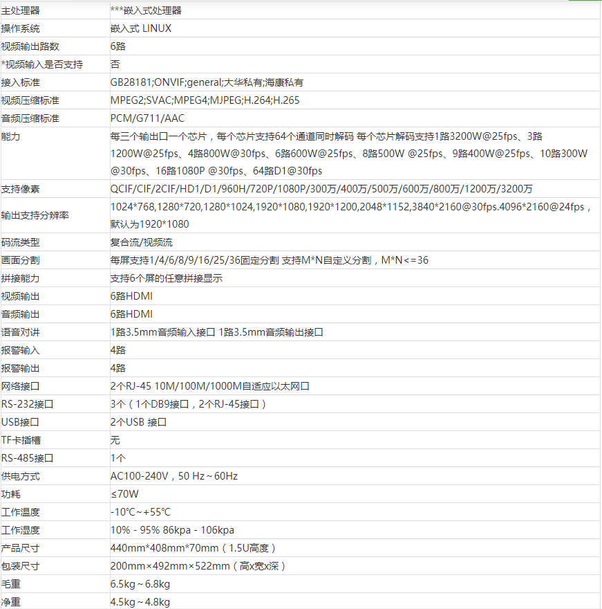 大华DH-NVD0605DH-4K 6路视频存储解码器