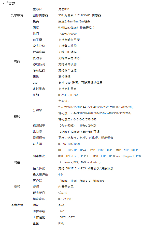 普天视PTS-IPC-6215KM-PB6 500万全彩筒形网络摄像机(支持POE)