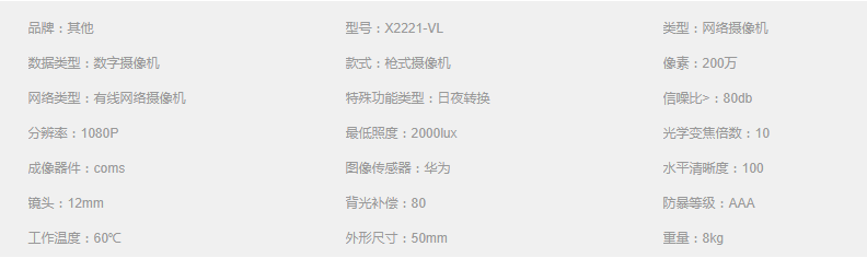 华为X2221-CL 200万人脸识别柔光筒型摄像机